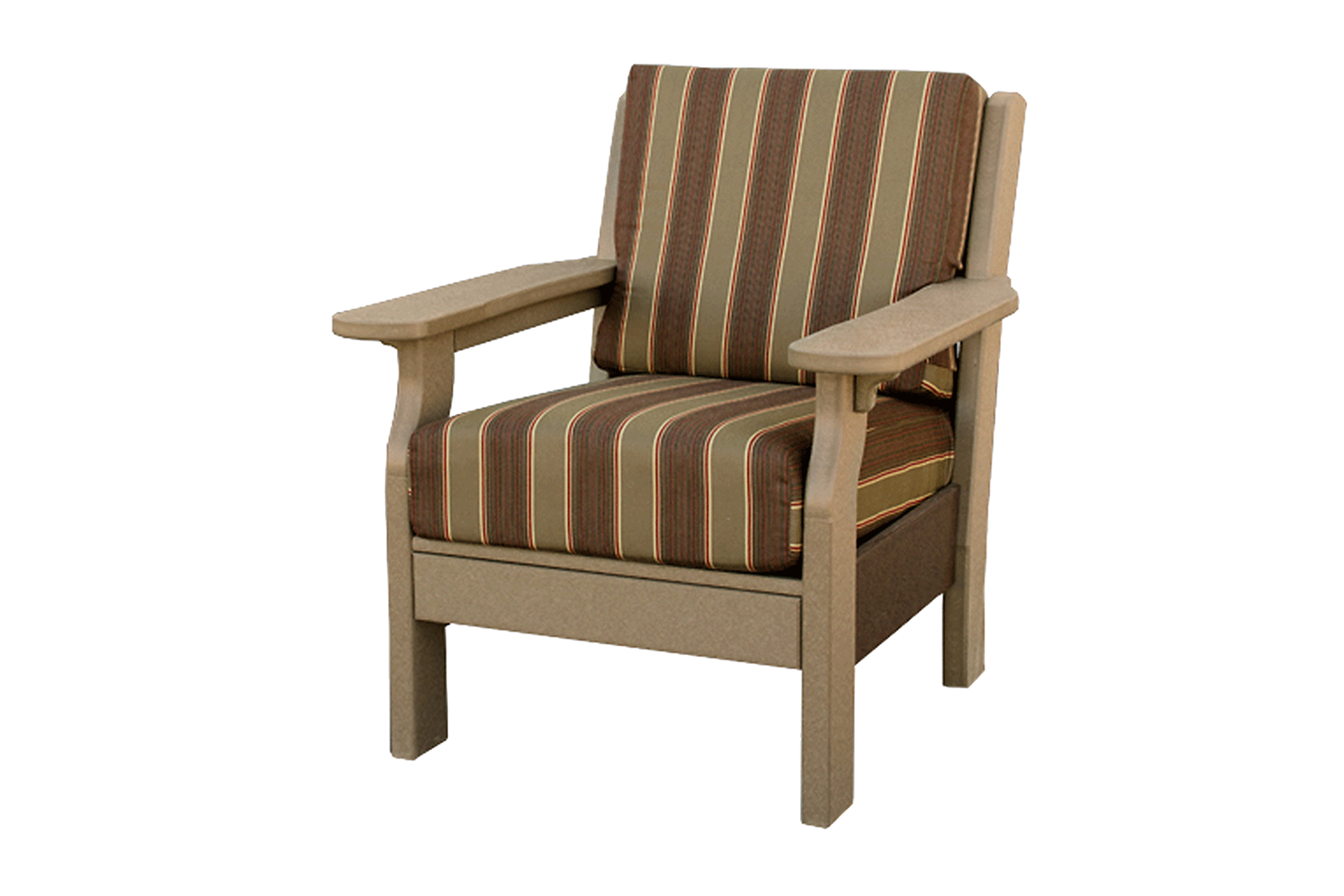shown in Black with Canvas Air Blue 7" cushions and WeatherWood/Brown with Davidson Redwood 7" cushions