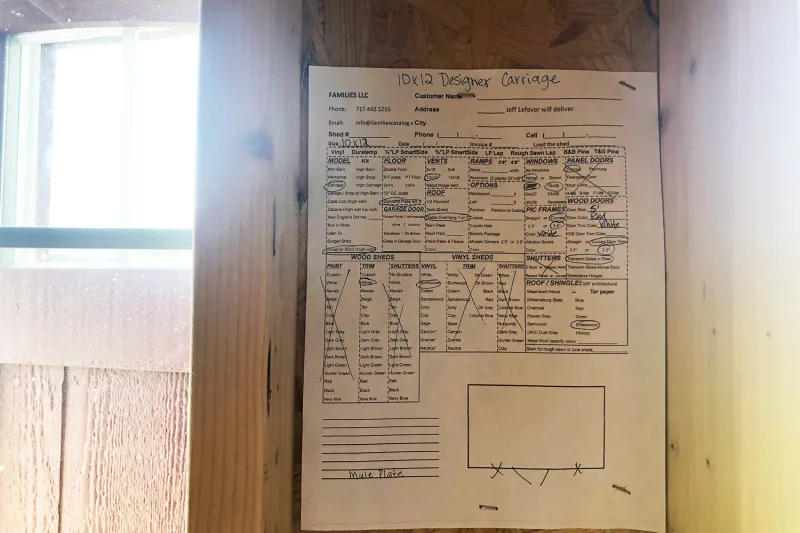 specs of shed detailed on Spec Sheet pictured above.