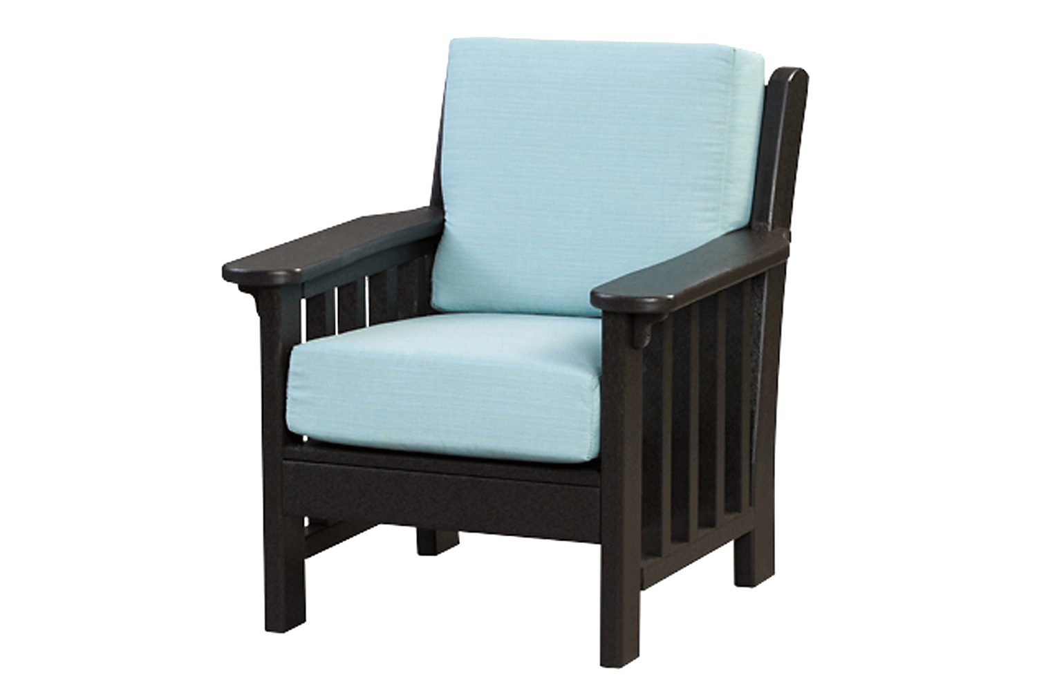 shown in Black with Canvas Air Blue 7" cushions and WeatherWood/Brown with Davidson Redwood 7" cushions