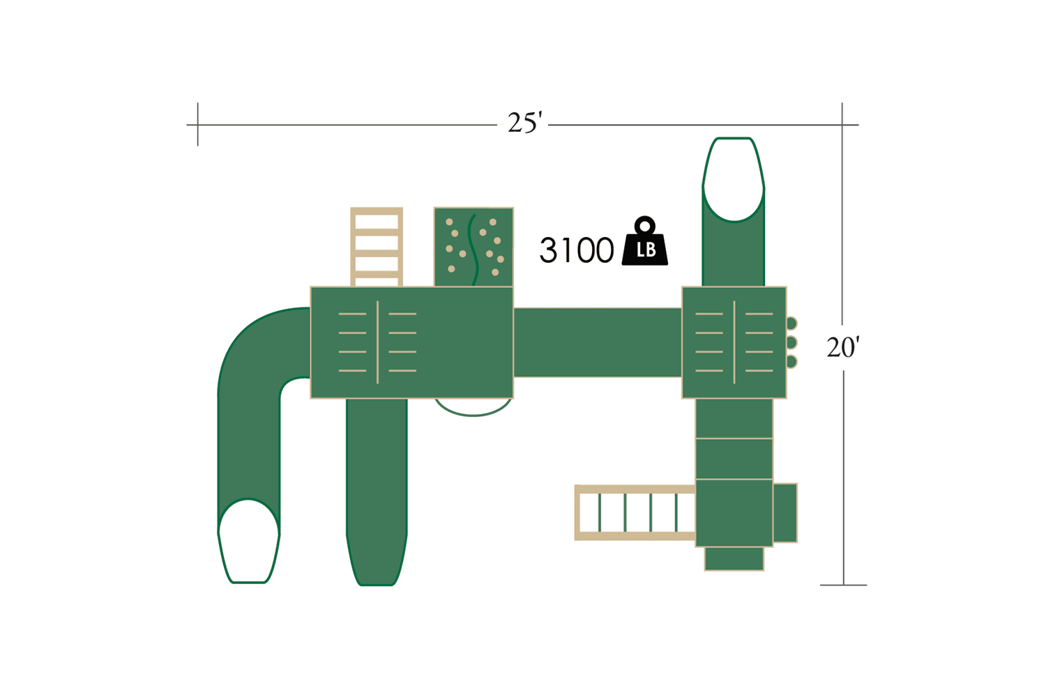 5' entrance ladder w/railing, 3' rock wall, monkey bars.